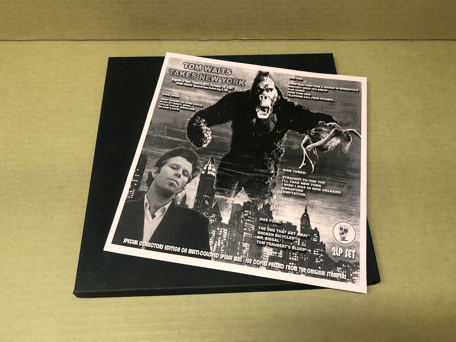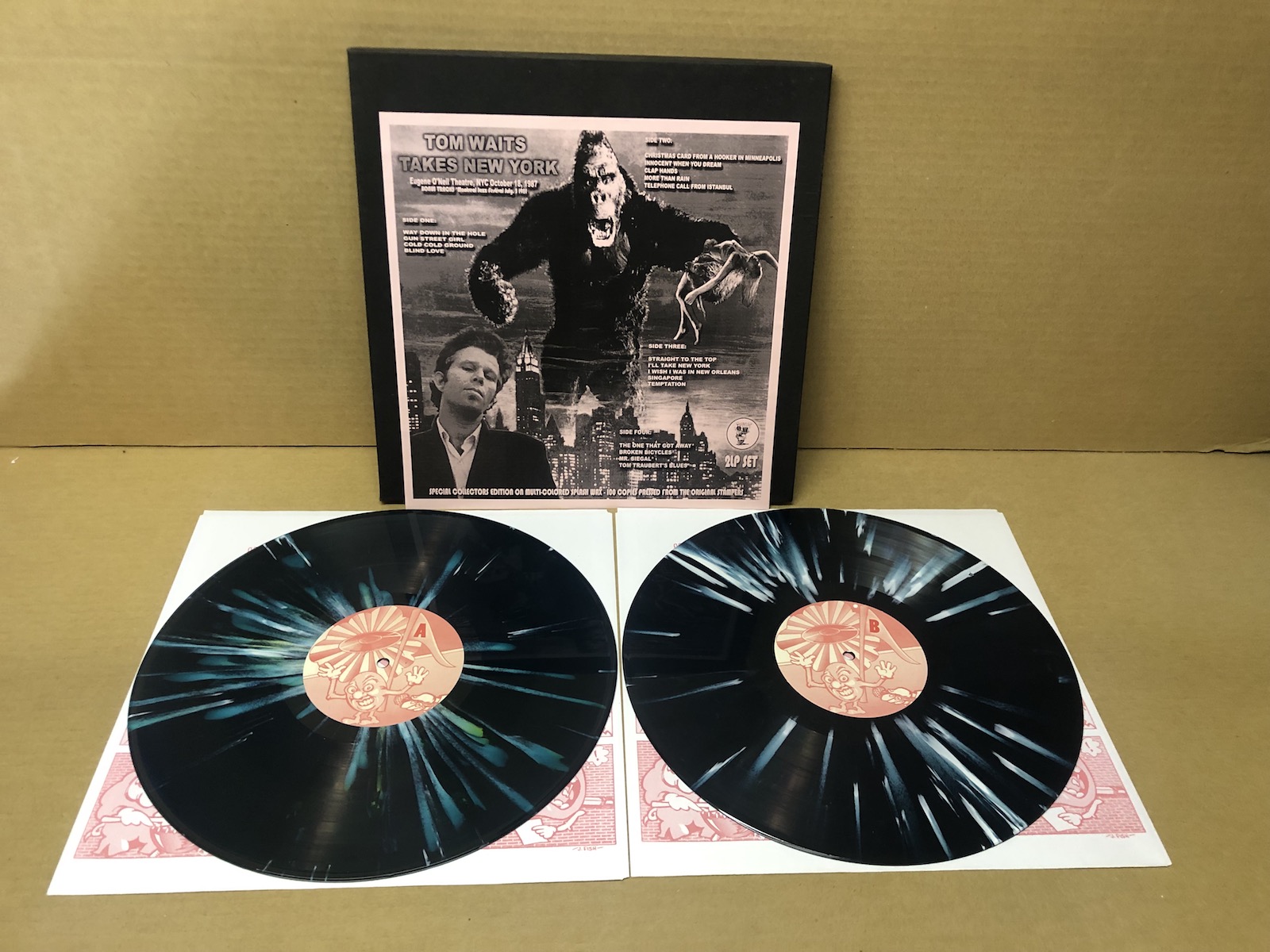 Tom Waits - Takes New York - 2LP. MULTICOLORED SPLASH VINYL. Eugene O’Neil Theatre, 1987. 100 made. Gold stamped box (Mint-) or gatefold sleeve versions (sealed) . CBM inner sleeves & label catalog inserts.